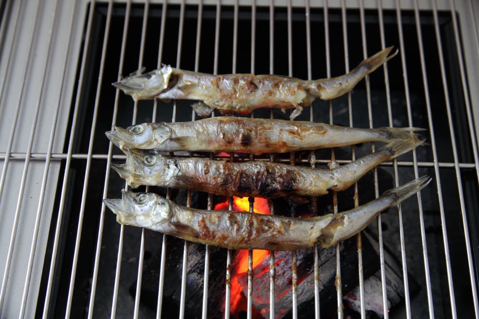 スーパーで売ってるめざしも、炭火で焼くとびっくりするくらい美味しくなります。