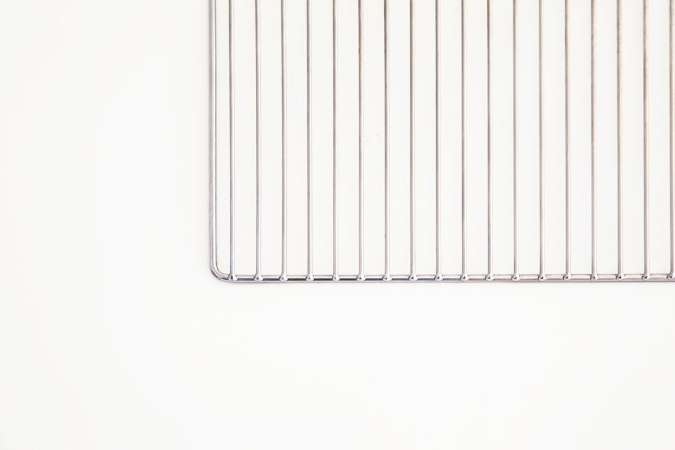 機能性をとことん追求した結果、この形になりました。網の交差は中央の一箇所のみなので、洗いやすく、太さも2mmあり丈夫です。大阪で40年続く金網専門の製作所で一点一点手作業で溶接し、仕上げています。