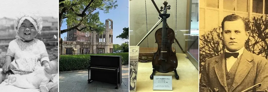 赤ちゃんのころの明子さんと「明子さんのピアノ」 広島女学院に所蔵されたバイオリンとセルゲイ・パルチコフさんそのための最初の取り組みとして、今年8月6日、オンライン・イベント「奏で継ぐヒロシマ~被爆を生き抜いた2つの楽器~」と、その感想文コンクールを行います。広島平和記念公園レストハウスから、「明子さんのピアノ」と「パルチコフさんのバイオリン」のお話と共演を配信します。それぞれの楽器を、広島にゆかりのあるお二人の演奏家、三原有紀さん(ピアノ)と坂直さん(バイオリン)が奏で継ぎます。