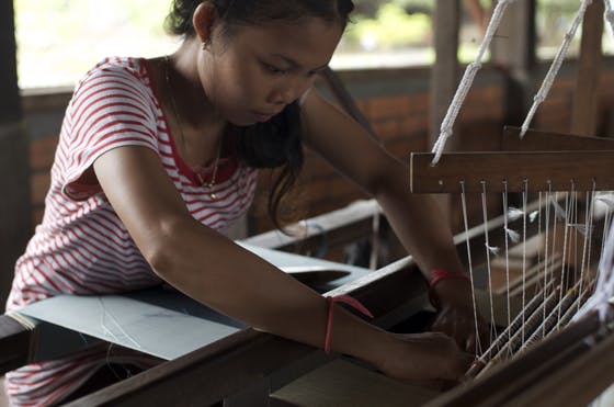 カンボジアの伝統的なデザインに新たな息吹を吹き込むとともに、貧しい農村地帯の女性たちに読み書きと絹織物の技術を教え、自立を支援することをめざして誕生したブランド。紡ぎ、染め、織り、すべて手作業。ひとつの織物が完成するまで90日かかるものもあります。