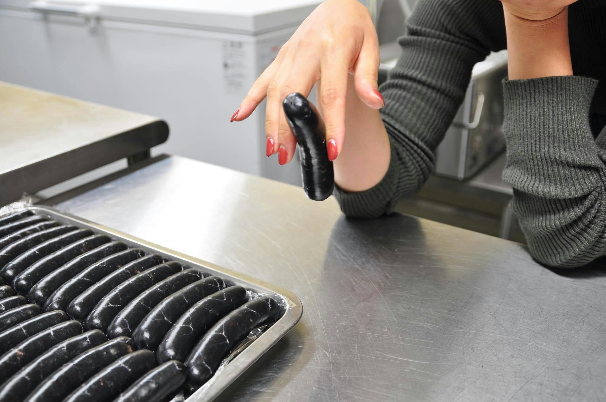 野生の猪を使った“イカ、マカ、ハカ“入りのイカ墨ソーセージ