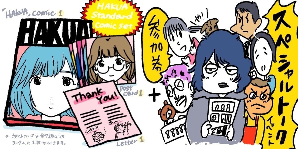 ※会場にお越しいただいたパトロンの方で、アートコミックス『白亜』スタンダードセットのコミックスのみ先に渡して欲しい方には、その場で合わせてサイン券もお渡しします。スタッフにお声がけください。