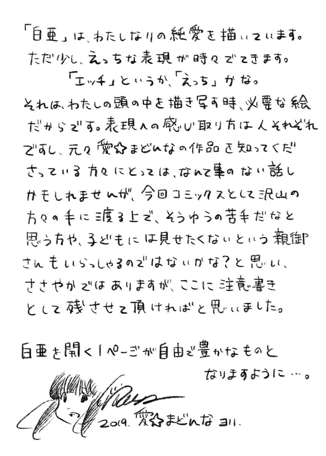 アートコミックス『白亜』に、CAMPFIRE限定ポストカードが1枚と、愛☆まどんな&山田玲司による直筆お手紙の複製が届きます。コミックスの書店等での一般販売(定価3672円税込)は6月3日ですので、一般販売前に手に入る貴重な機会となります! もちろん、送料も込み!