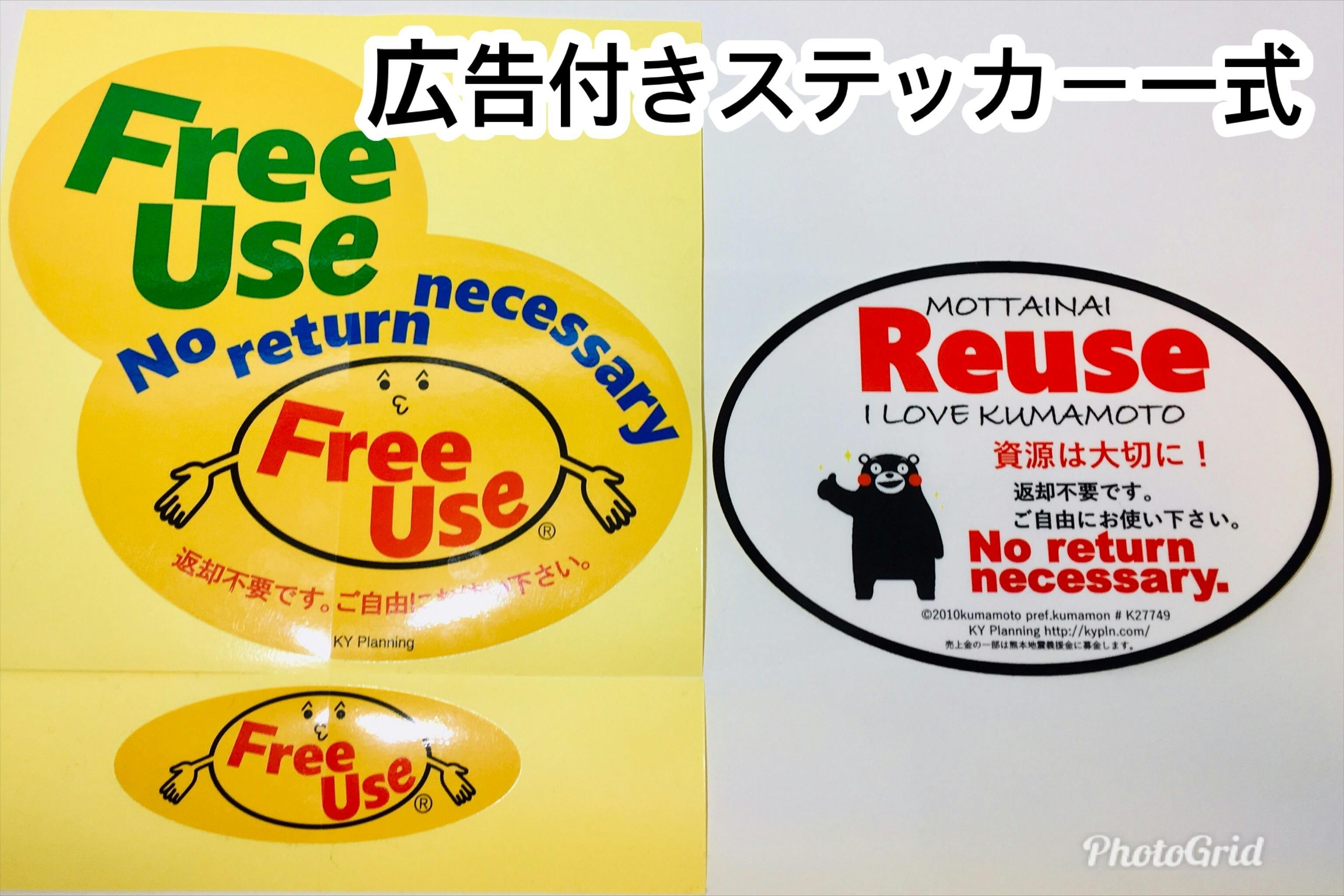 フリーユースステッカーは現在基本セットの他、PRステッカーが「くまモン(赤)・くまモン(黒)・&TOKYO・しながわ」の4種類あります。更に今回は「フリーユースエコバッグ」もテスト的に製作しリターンとします。