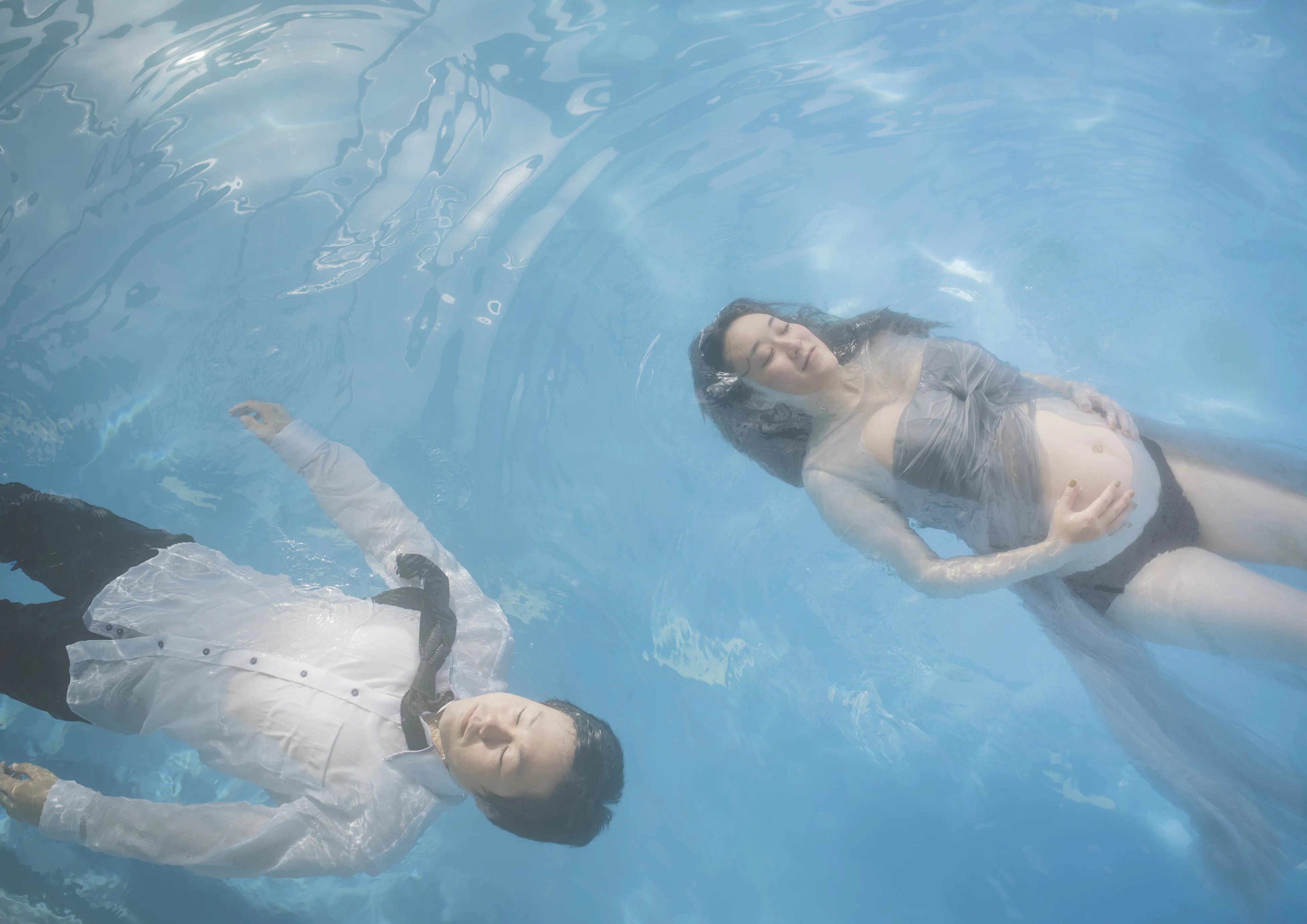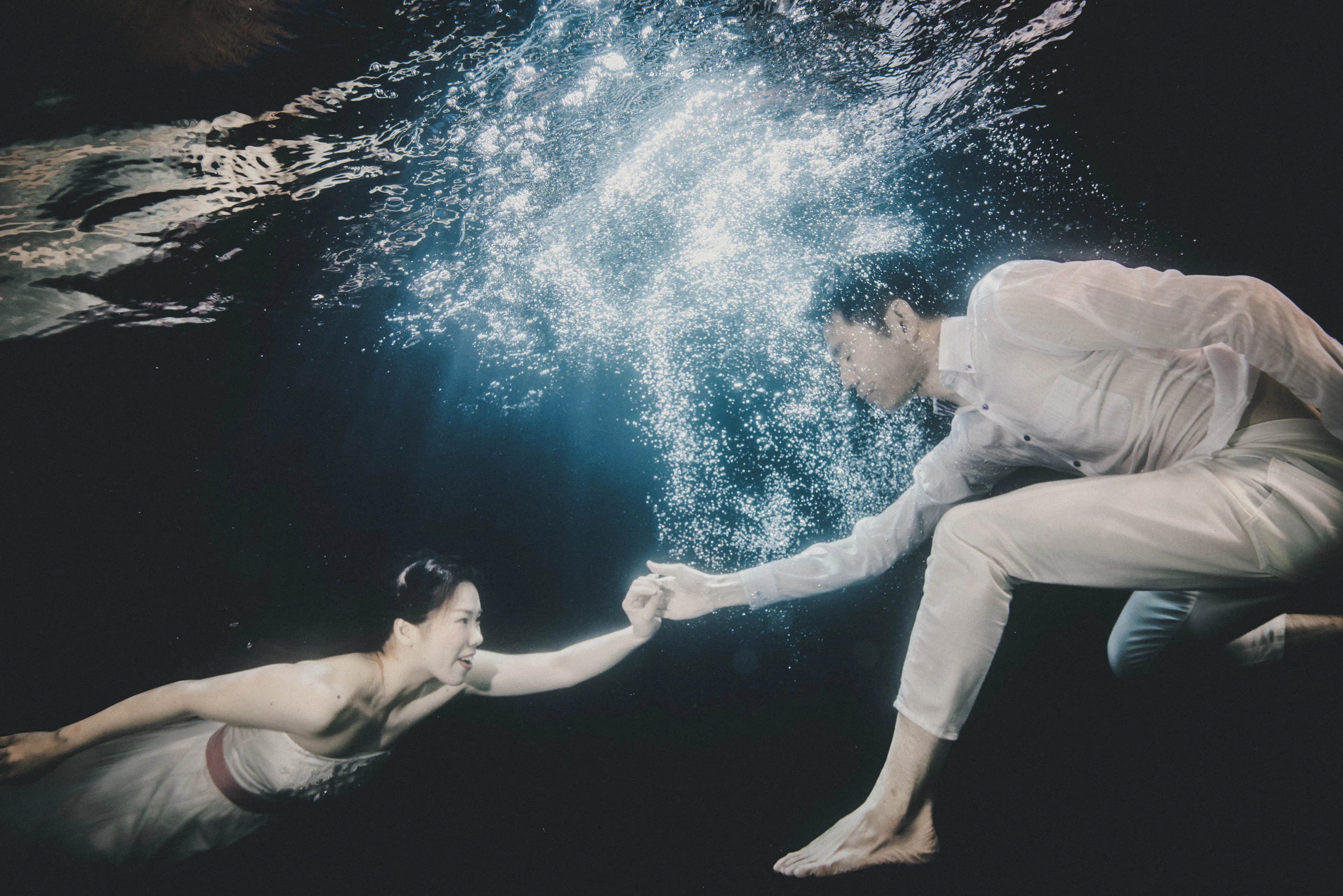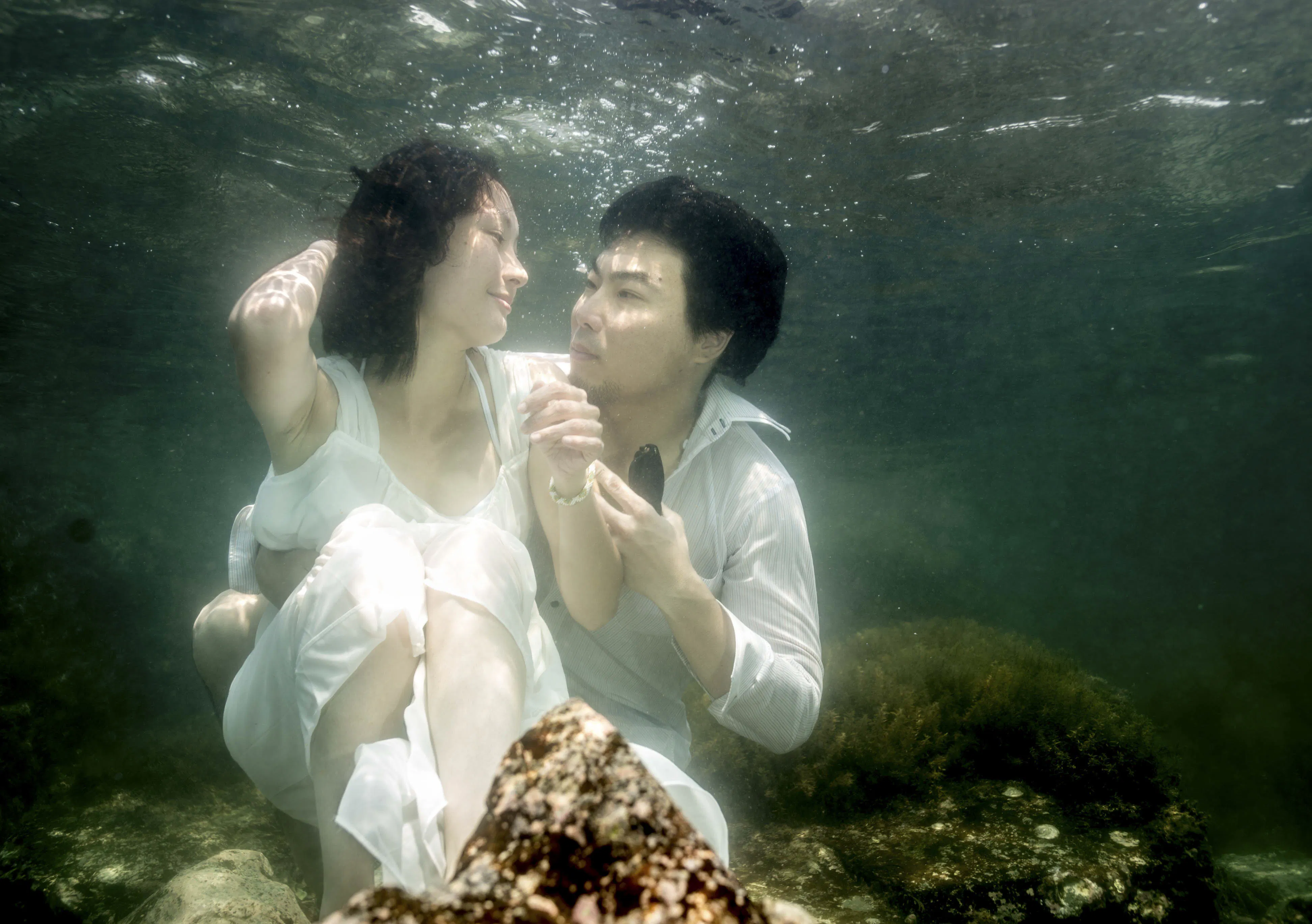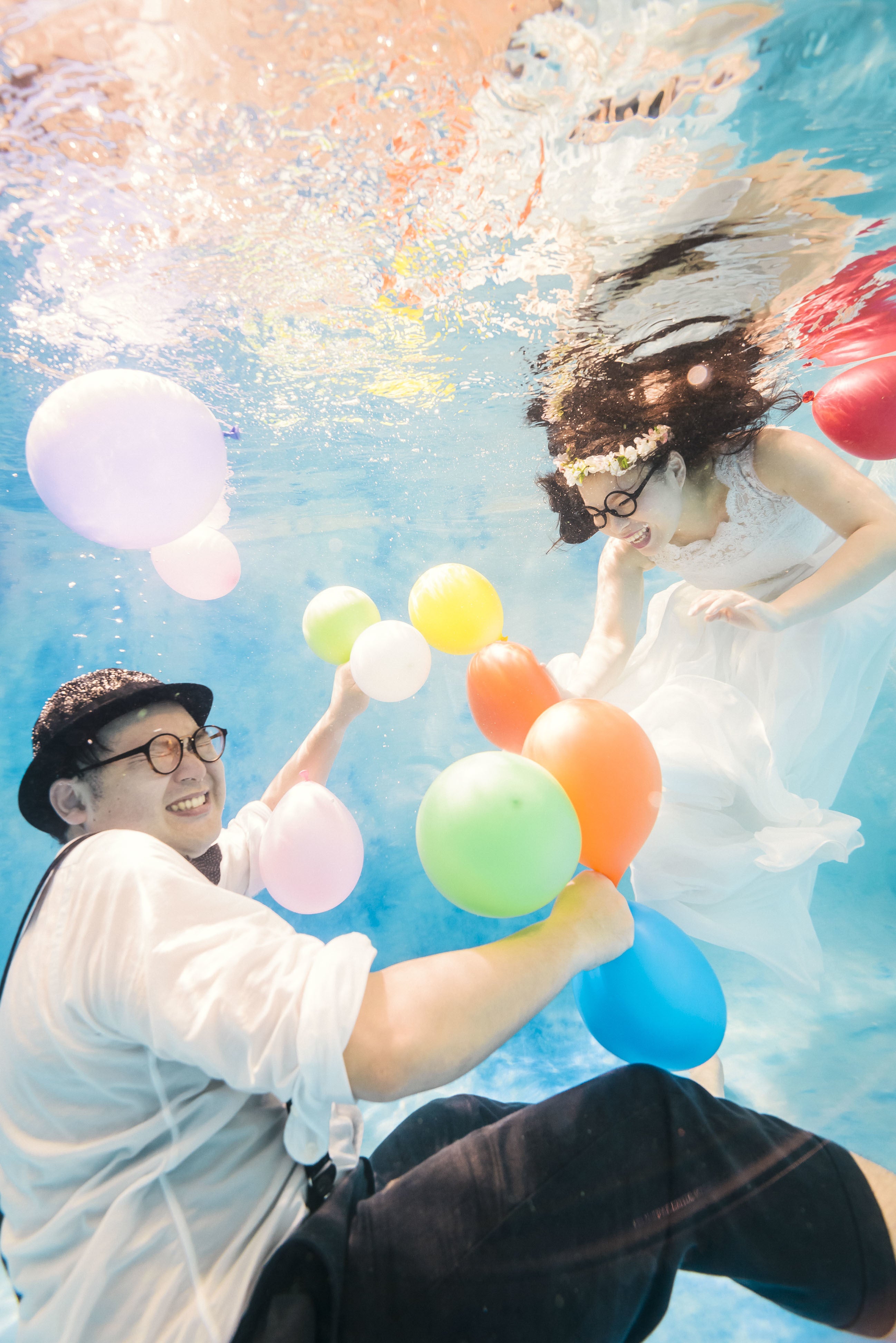 スイマーやダイバーのカップルが思い出の水の中で撮影出来るように