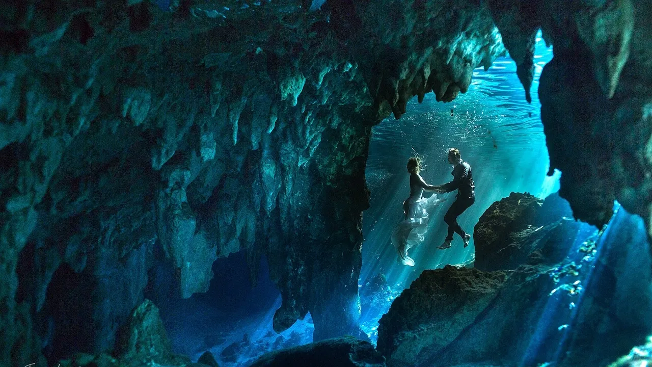 メキシコのセノーテという透明度が50mほどある水中洞窟でで撮影された