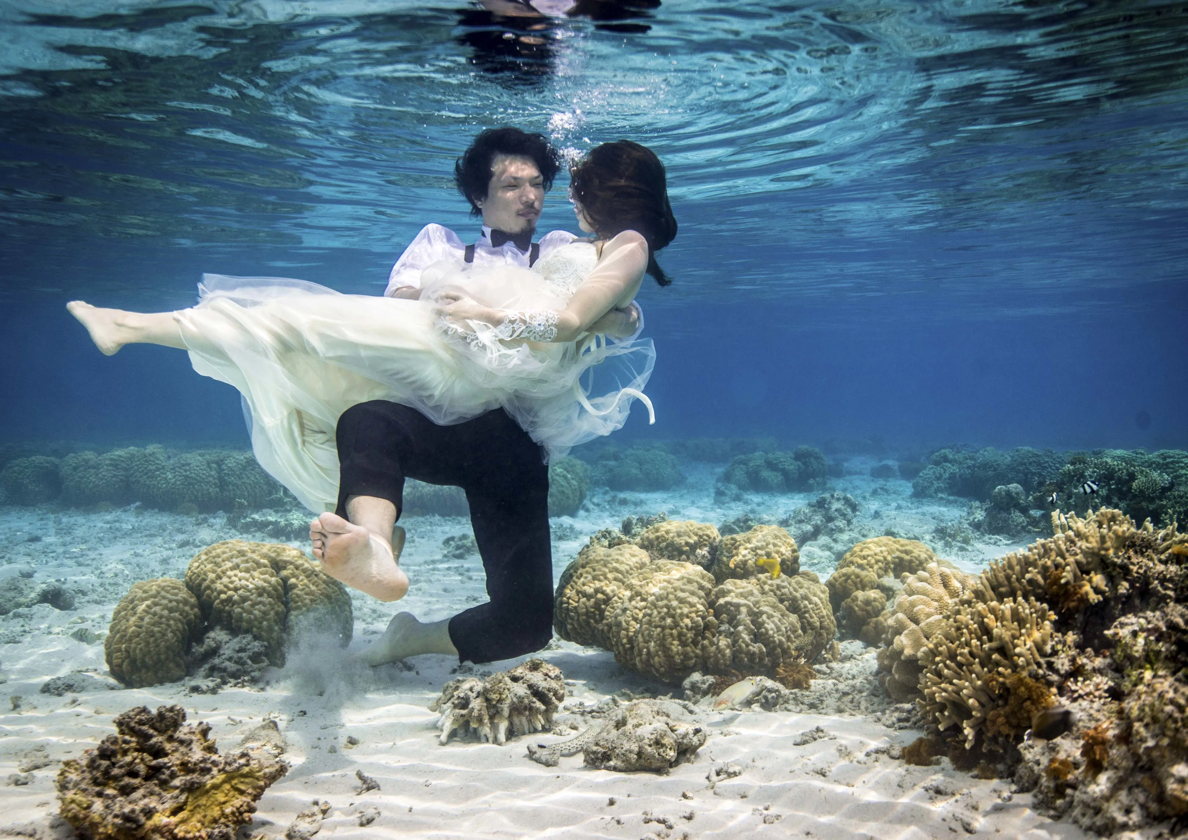 水中ウェディングフォトの画像をネットでたまたま見つけて衝撃を受けたのを鮮明に覚えています。