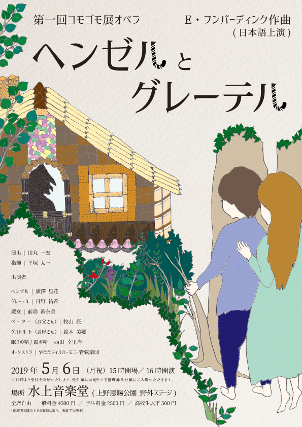そんな中で、今回のプロジェクトは、グレーテル役の日野さんと指揮の平塚くんが学部生時代に企画した「子どもから大人まで楽しめるオペラ」から始まり、たくさんの方に協力をしていただきながら「コモゴモ展オペラ」として活動を開始しました。