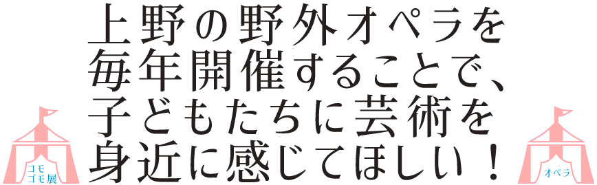 今回のプロジェクト「コモゴモ展オペラ」は、「子どもから大人まで、芸術をもっと楽しく身近なものに!」をテーマに、東京藝術大学の卒業生と学生に加え、主に台東区内の小学生への公募で集まった合唱団と共に送ります。