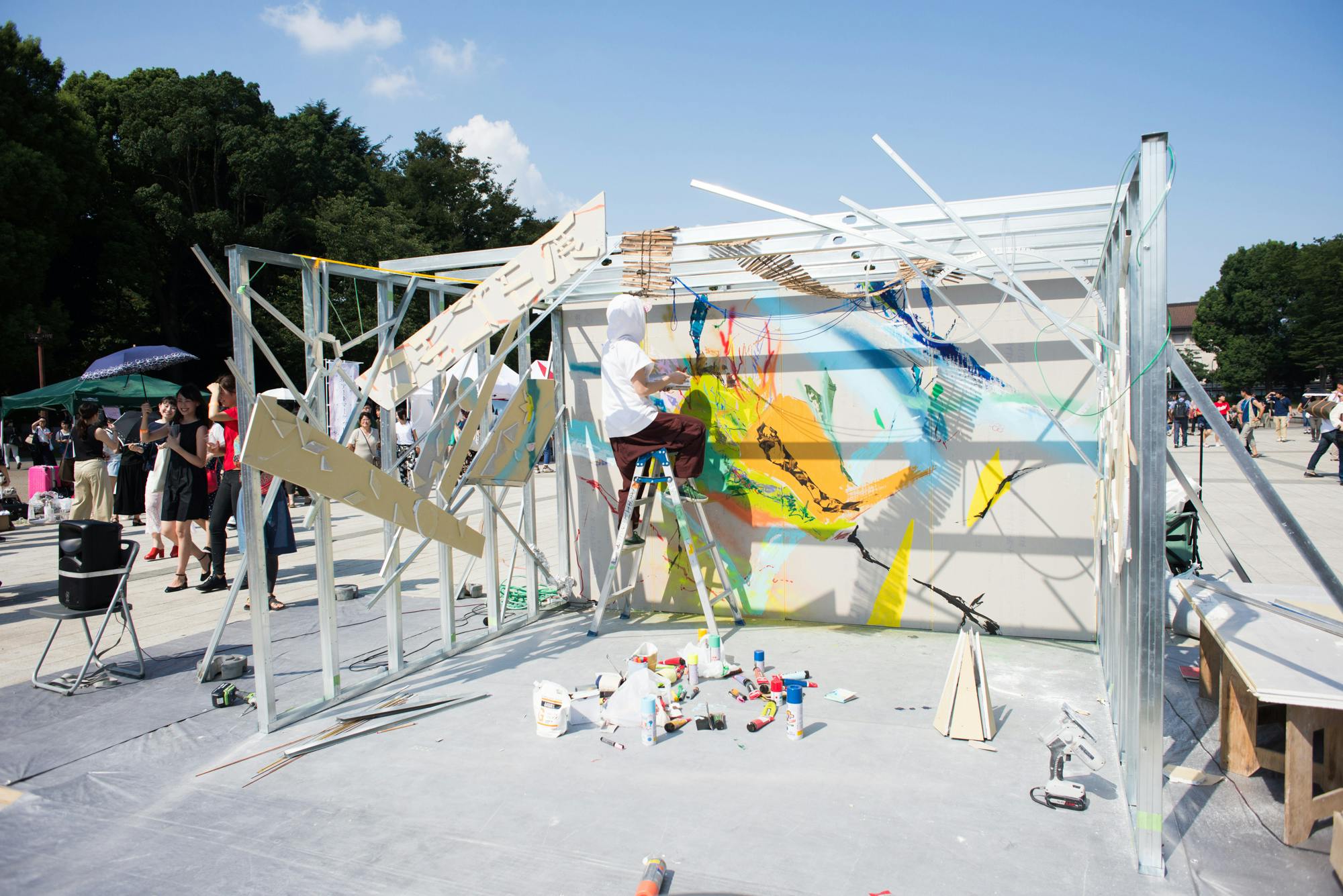 コモゴモ展は、上野公園というオープンな場所で開催することで、訪れた方に芸術を身近に感じてもらい、子どもから大人までの幅広い世代の人々と、参加する作家や演奏者が交流することで、互いに学びあえる場となるようなイベントを目指してきました。