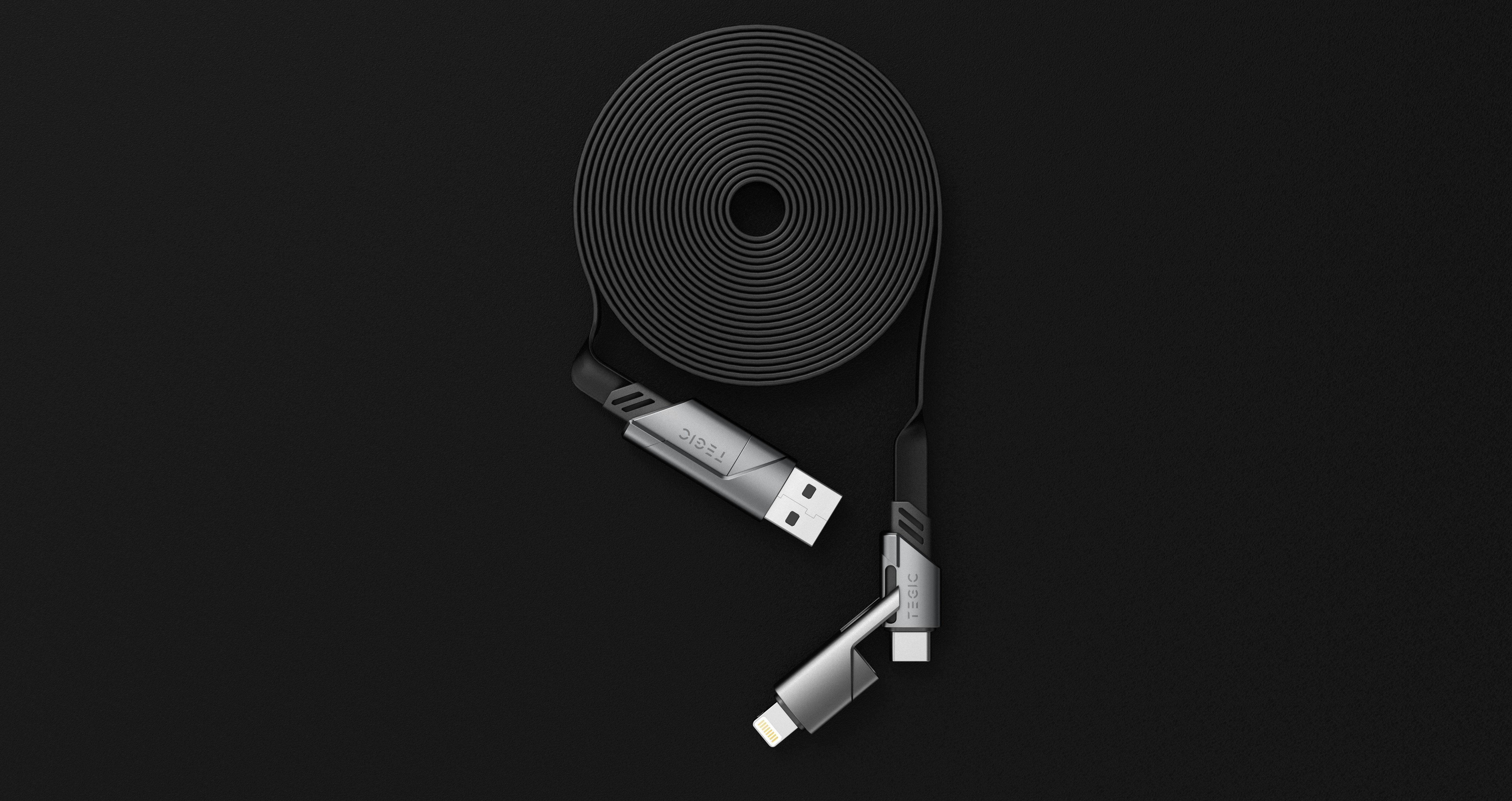 TEGICは、さまざまな最新電子機器に対応した超多用途『4in1充電ケーブル』 です。Type-C to Lightning、USB to Type-C、USB to Lightning、Type-C to Type-Cまでをサポートします。
