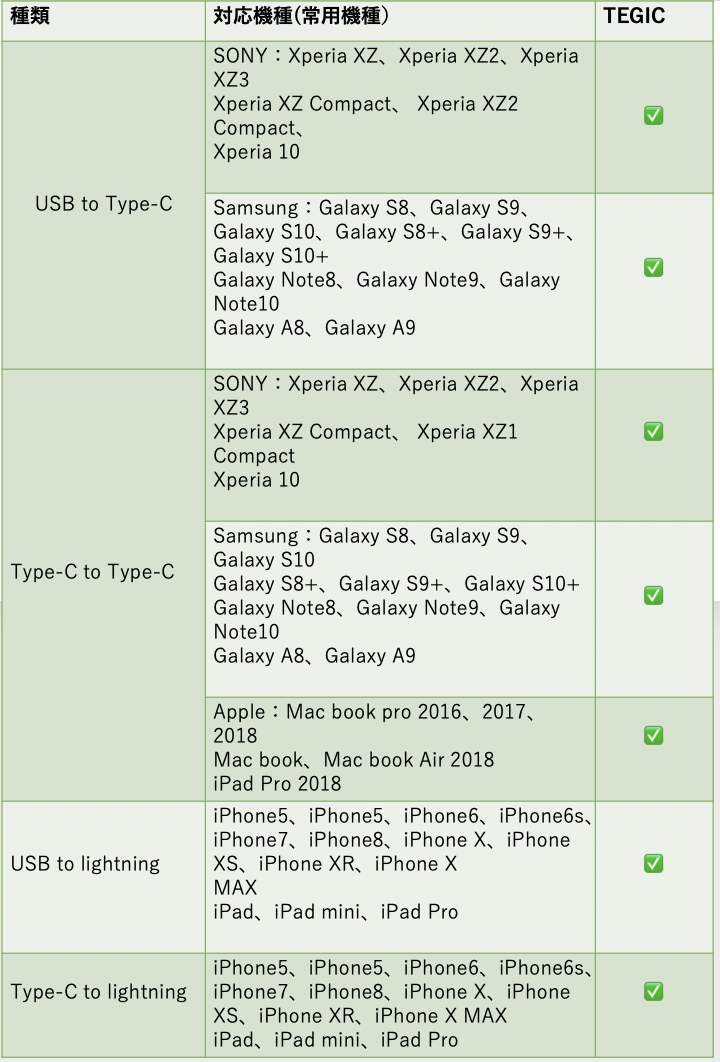 私達の設計は、TEGICケーブルを4つの異なる接続ポートで動作させます。そして日常生活の中でデバイスを充電するためのあらゆるニーズを満たすことが保証されています。