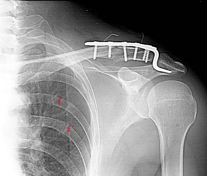 奮発してONE-Dを購入した翌年には、転倒して 鎖骨複雑骨折(ボルトで固定)+肋骨3か所を骨折するまさに「重傷」。