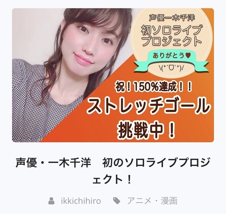 ▶【一木千洋人生初のソロライブを成功させたい!プロジェクト】