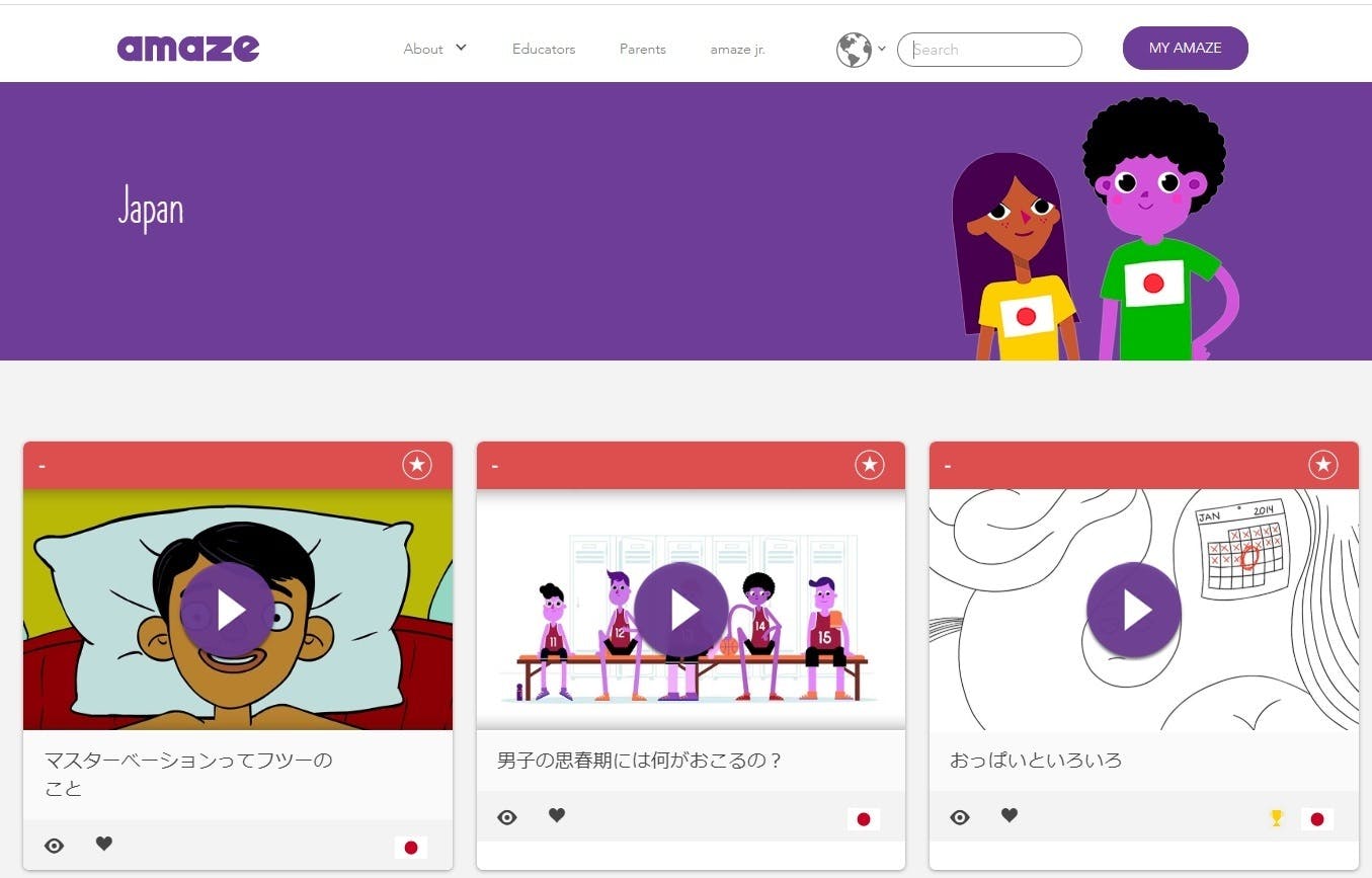 そう思い、海外のリソースをリサーチしたところ、たくさんの魅力的で豊富な性教育教材を見つけることができました。その中でも特に私たちの目にとまったのがAMAZEです。