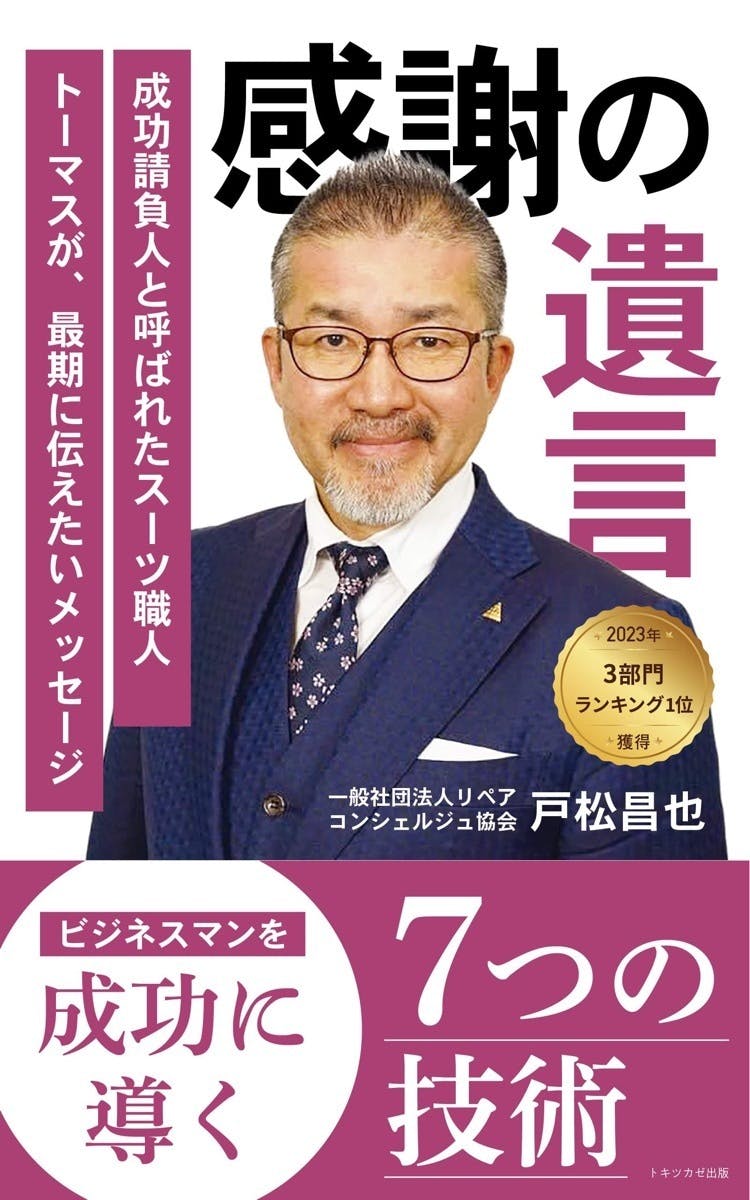 2023/10/03 11:29日本一のオーダースーツ職人トーマスこと戸松昌也です。当社の後継者問題などで出版を延期しておりましたが、10月1日に『感謝の遺言』が無事に出版されました!お待たせしてしまい大変申し訳ありませんでした。おかげさまでAmazonのマスメディア部門をはじめ3部門でランキング1位を獲得することができました!本当にありがとうございます。書籍リターンをお選びいただいた皆様へは、オンデマンド(POD)印刷が可能になる11月に印刷版をお送りさせていただきますので、もう少しお待ちいただけますと幸いです。書籍送付の際にまたご連絡いたします。引き続きよろしくお願いいたします! もっと見る