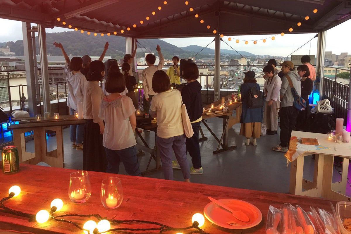 「夏至カレー」というワードにおもしろそう!と乗ってくれた友人と協力し、知り合いの屋上を借りました。集客はSNSと口コミ。50名が集まってくれて一緒にカレーを食べ、日の入りを楽しみました。