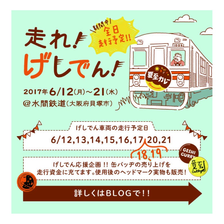 彼女は「夏至カレー」のホームページを作り毎年グッズを更新。地方の電車のヘッドマークの応募があれば、早速申し込み夏至カレー電車を走らせちゃう。