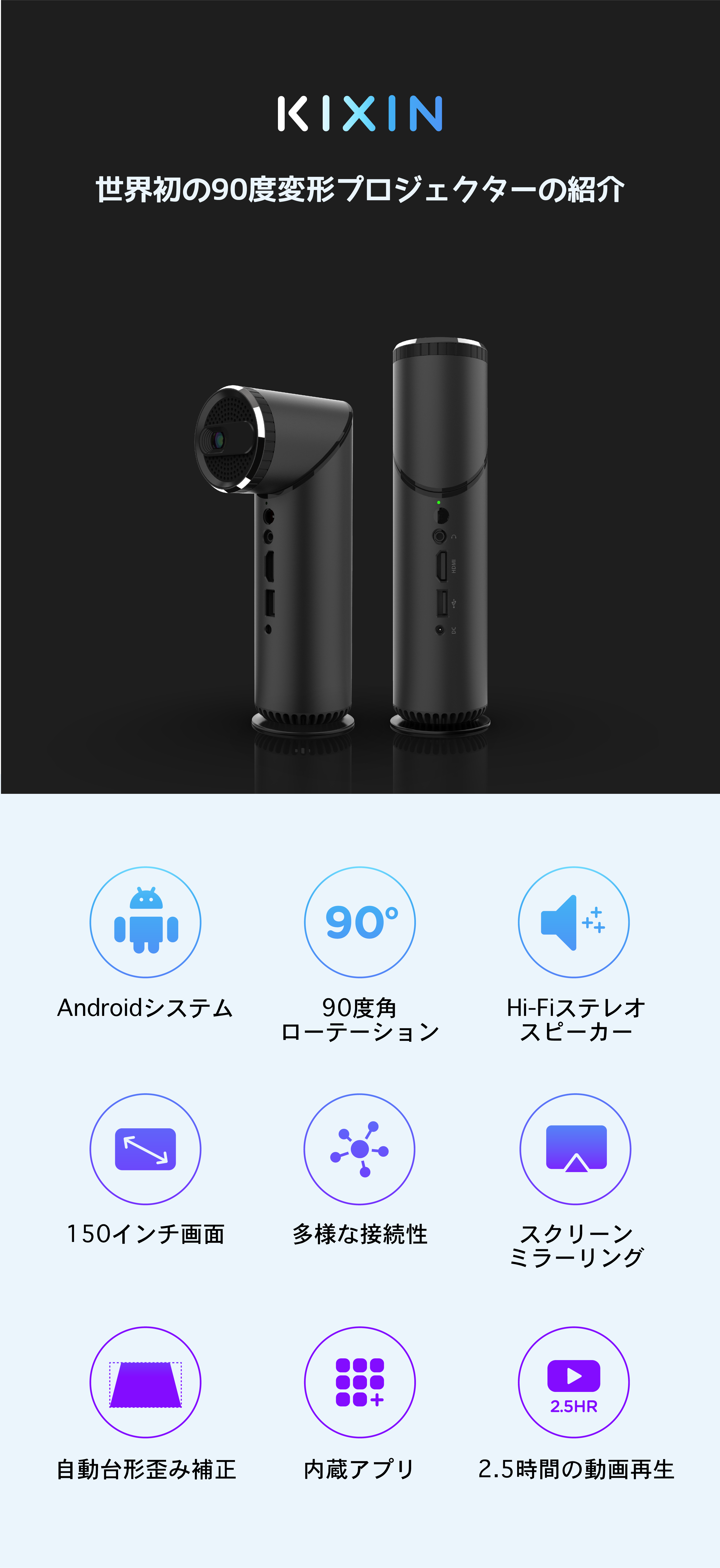 2006年に設立されたKIXINは、DLPプロジェクターの専門メーカーです。研究開発と経営は香港、製造は深センで行うKIXINがこれまでに開発してきた多くの人気製品は、広く80ヶ国以上で販売されています。