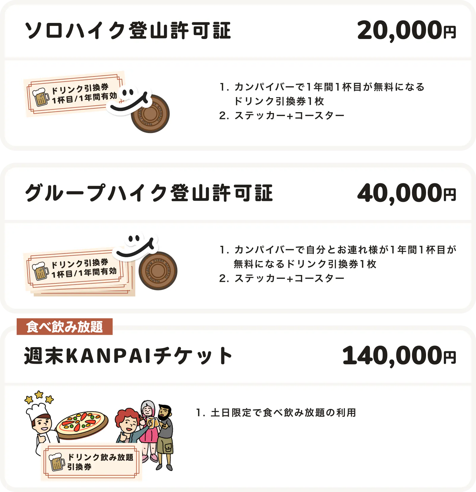 カンパイヒュッテを訪れる際にお得なチケットやイベント開催券など、これからヒュッテを最大限ご活用されていきたいかた向け!