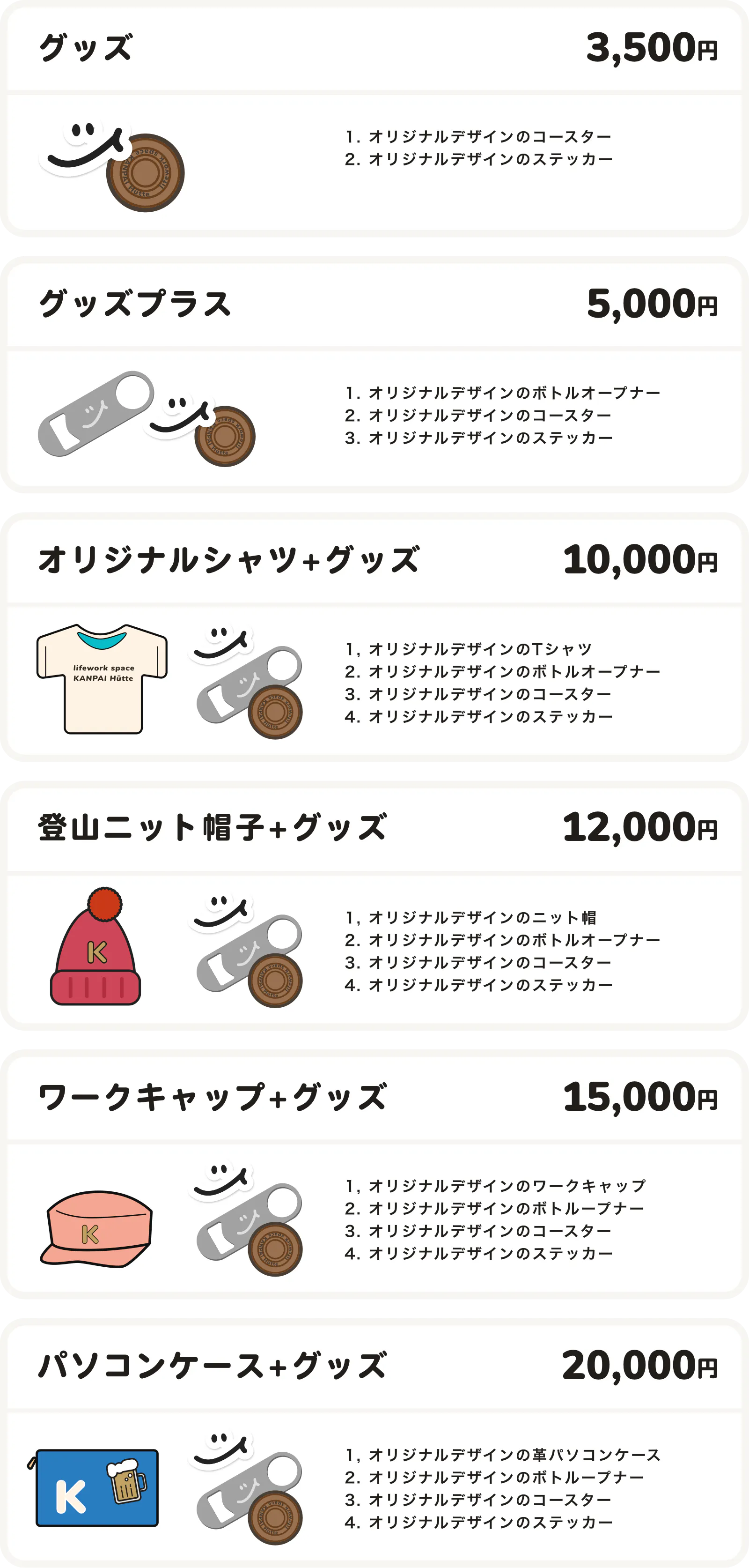 カンパイヒュッテのオープニングイベントに参加して、カンパイヒュッテの門出を一緒に盛り上げていっていただきたいと思いご用意しました。