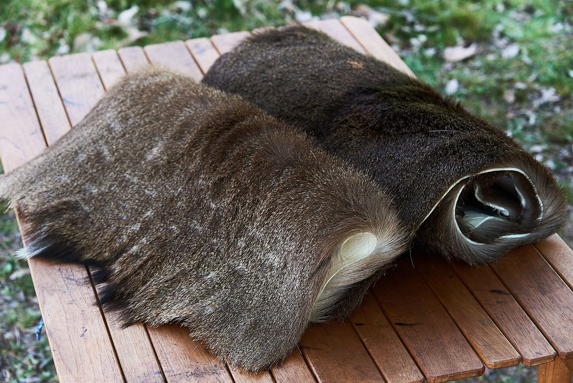 ・ニホンジカ一頭分の毛皮(チェアカバー用に上42cm/下45cmのテーパード長さ80センチに裁断)