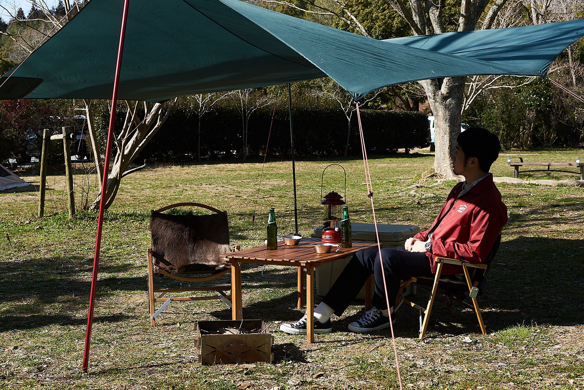 このチェアカバーをキャンプに持ち出して、
