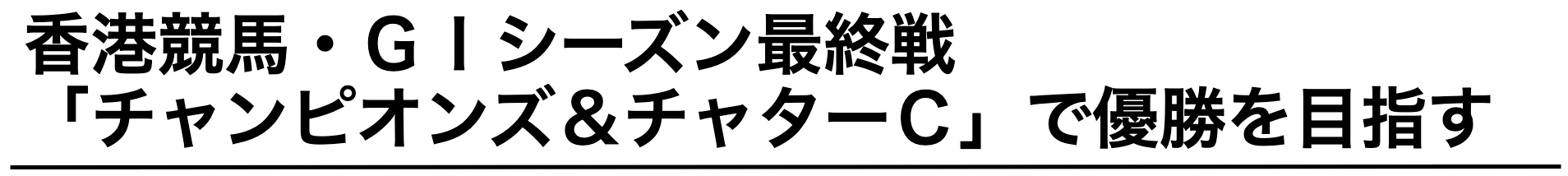 このレースは日本馬が出走した事がありませんので馴染みが薄いかもしれませんが、国際GIとして施行されており、香港三冠の最終戦と位置付けられている芝2400mの競走です。優勝賞金は約8千万円で、9月から翌年7月中旬までを1つのシーズンとして行われる香港競馬のシーズン最後のGIでもあります。