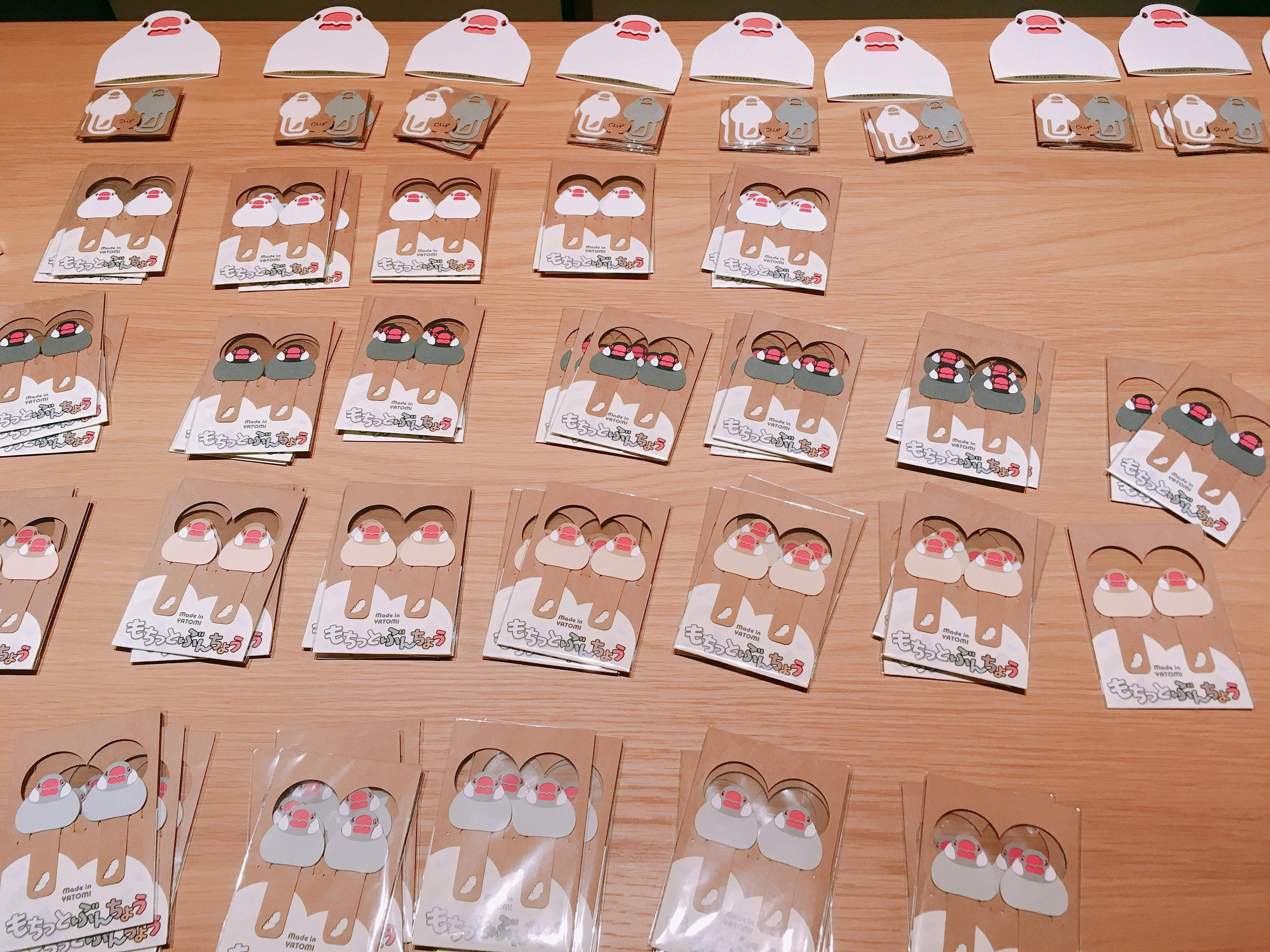 2019/05/14 15:265/11(土)弥富市のウィングプラザパディーにて開催された【弥富 音フェスday1&mini文鳥マルシェ】にて、文鳥栞「もちっとぶんちょう」を無事に発売デビューさせることができました。ありがとうございます。当日、弥富市の近隣の市町のほか、東京や静岡、長野など、遠方よりこのイベントにご来場いただいたり、このクラウドファンディングをご存知の方もお見えになったりして、たくさんのお客様が目を輝かせて「もちっとぶんちょう」を連れ帰っていただけたのが印象的でとても嬉しく思いました。イベント関係者の方々には、さまざまなご配慮いただき大変お世話になりました。現在、引き続き、パトロンの皆さまへのリターンの準備製作をしております。概ね5月末までのお届けを予定しております。また今後の予定として、皆様へのリターンをお届け後、6月初旬より一般販売として、当社ペーパーアイテム企画販売ブランドKirieFabbrica(きりえファブリカ)のamazonアカウントおよびminneアカウントにてweb販売も開始する予定です。実店舗販売では、弥富市にあります、スイーツ&カフェの「プラスワンズホーム」さんにて、委託販売をさせていただく予定です。引き続きよろしくお願いいたします。 もっと見る