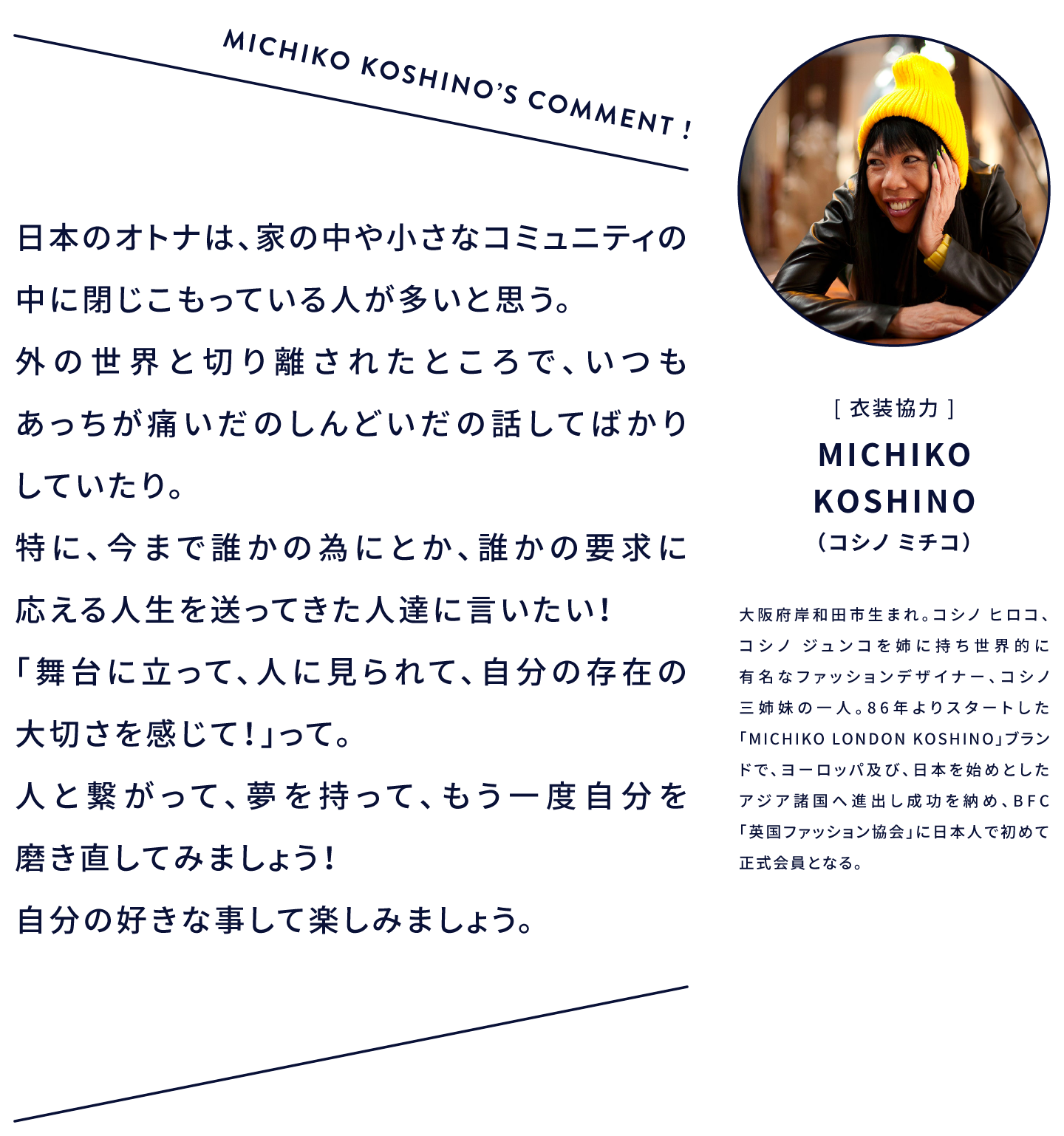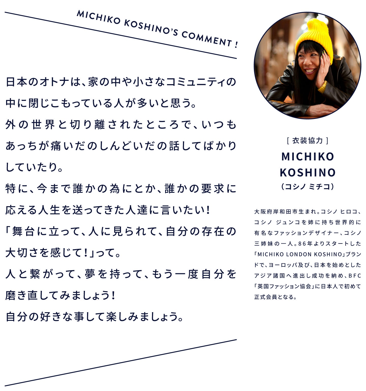 そして、私たちの活動が、超高齢社会と言われる日本で、年齢を重ねることをポジティブにできる瞬間をつくり、日本を少しでも元気にできればと考えています。