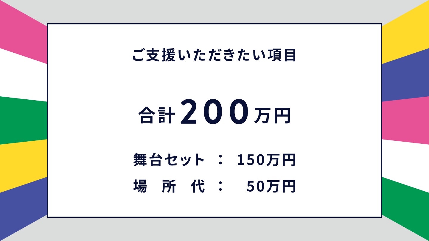 そのため、場所代と舞台セット費用の200万円が現状だと捻出できません。皆さんのご支援を頂いて、この公演を実現したいです。ご協力よろしくお願いします。