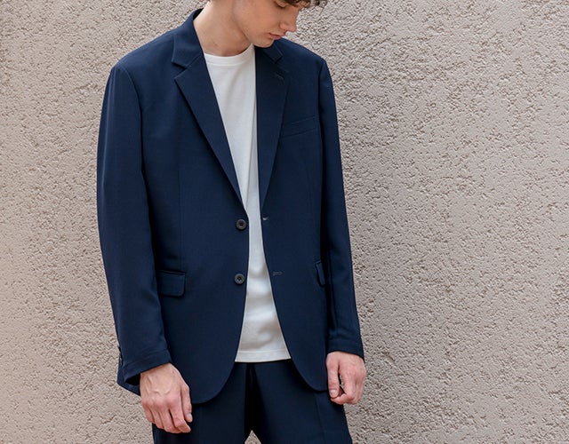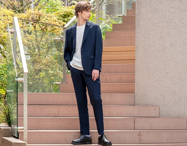 機能素材や付属使いによって現代シーンにおけるビジネスカジュアルにファッション性と機能性を併せ持つアイテムに昇華し、更にイージーケアを実現したものが“洗えるTECH SUIT”。