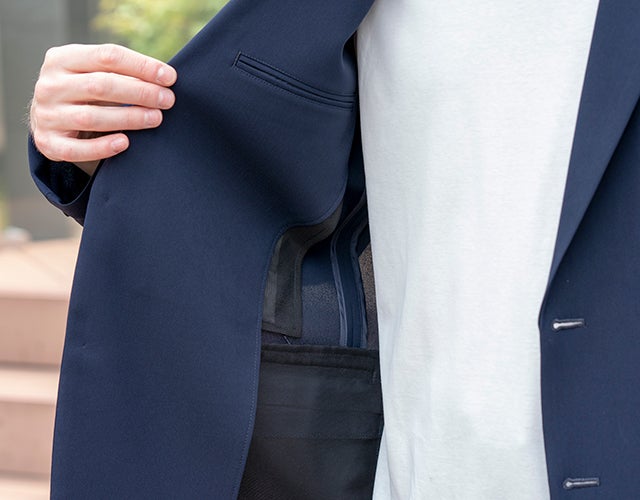 背幅、細腹、内袖のすべての生地分量の調整により脇下の運動量を確保することで、今までにない腕の動かしやすさと、腕をおろした時にも綺麗なシルエットを生み出しています。