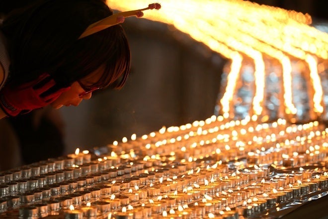 1万日目の誕生日に、誕生日ケーキのローソクを年の数だけ吹き消すことにならって、1人で1万本のローソクを吹き消しました。