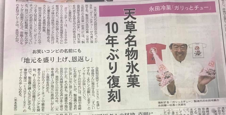【 新聞見たよ〜の嬉しい声】 昨日5/18の熊日新聞にもガリっとチュー