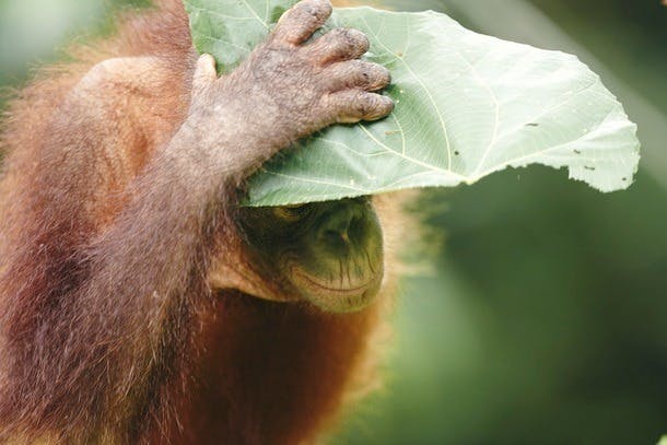 ボルネオオランウータンは、インドネシアのカリマンタン(ボルネオ)島に散在的に分布していて、主に低地の湿地林や丘陵地の熱帯雨林、二次林などに生息し、果実の多いところを好む絶滅危惧種。体はゴリラに次いで大きい類人猿です。