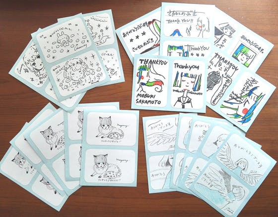 2017/03/22 23:20作家様ご本人にもご支援額の一部をお渡ししている、『作家様ご支援プラン』(\5,000)だけのリターンとなっているドローイングがとどきました!! 百聞は一見にしかずといいますが、もはやドローイングというにはもったいないくらいに完成度の高い作品が並んでいます。 作家さんのご支援に対する感謝の気持ちが伝わってきて、主催者としても大変ありがたい限りです・・・。 こちらの作家様ご支援プランの内\1,000は、今回のクラウドファンディングの成否にかかわらず、作家様に直接お渡ししています。(限定10支援まで) もしご支援されたい作家様がいらっしゃいましたら、是非こちらのプランでご支援下さい。リターンの内容も充実しています。 【リターンの内容】・グッズ(ご支援作家様のクリアファイル、ポストカード一式)・合同本(ご支援作家様の直筆サインor直筆メッセージカード付き)・ご支援作家様のドローイング作品 ◎安藤光さん ◎むすびさん ◎松本剛さん ◎さかもとめぶきさん ◎ななさん もっと見る