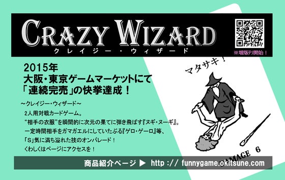 そんな状況を打破する為、当プロジェクトの存続と発展を目的に、最新作「クレイジー・ウィザード」の増版資金援助を集ってみよう、という決断に至りました。