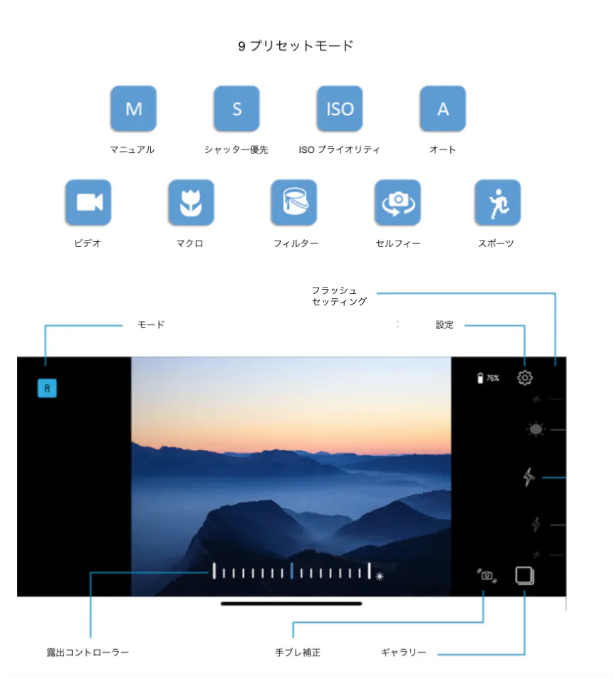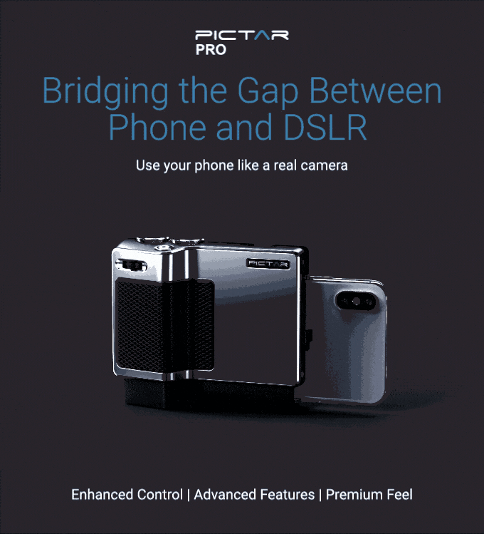 Pictar Proは、スマートフォンを本物のカメラのように見せるだけでなく、何十もの機能やコントロールを追加することができます。Pictar Proは、スマートフォンの性能とカメラの使いにくさのギャップを、幅広い物理的制御とソフトウェア機能で解消します。