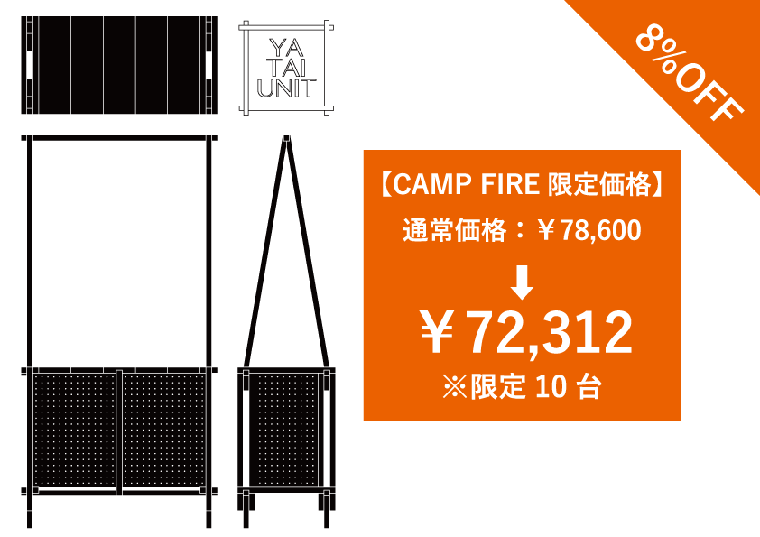 この時にこの屋台はフレームを1ユニットずつ組んでいるってことを3人で話しながら、商品名はそのまま「YATAI UNIT」にしようということになりました。