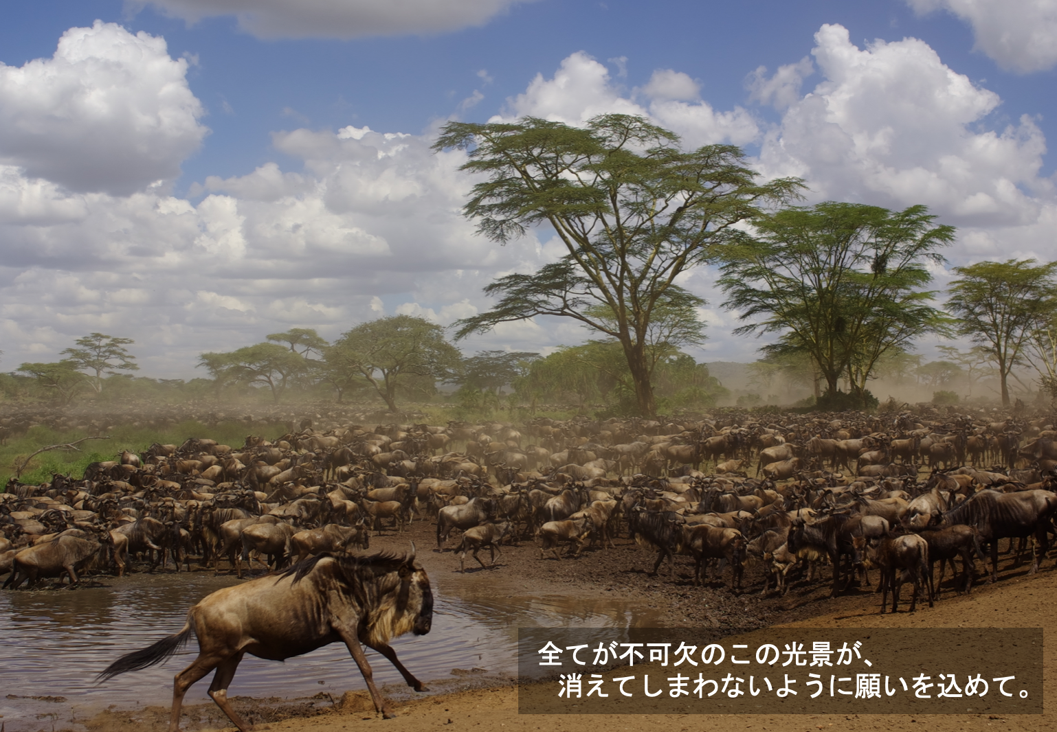 写真集は、この3つの伝えたいテーマと、”ヌーの移動” が絡み合って展開していきます.....