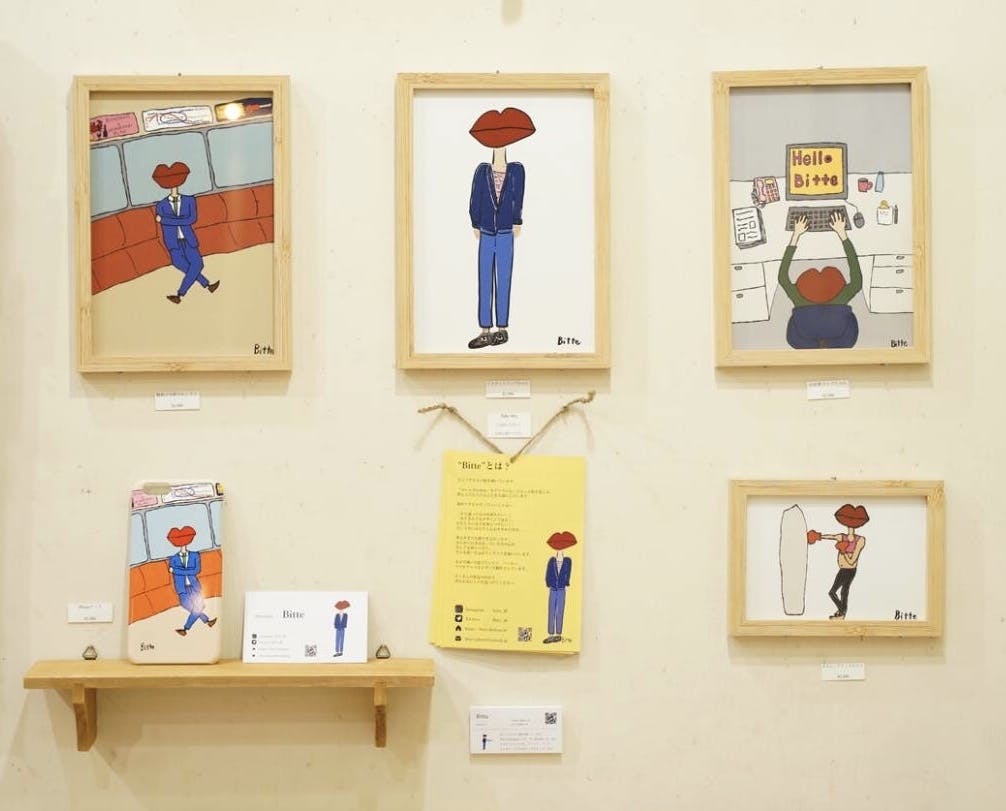 作品はオンラインショップ(https://bitte.thebase.in)とInstagram(https://www.instagram.com/bitte_26/)で発表しています。アートをもっと身近に感じてもらうため絵だけでなくスマホケースやTシャツなどのグッズも製作しています。