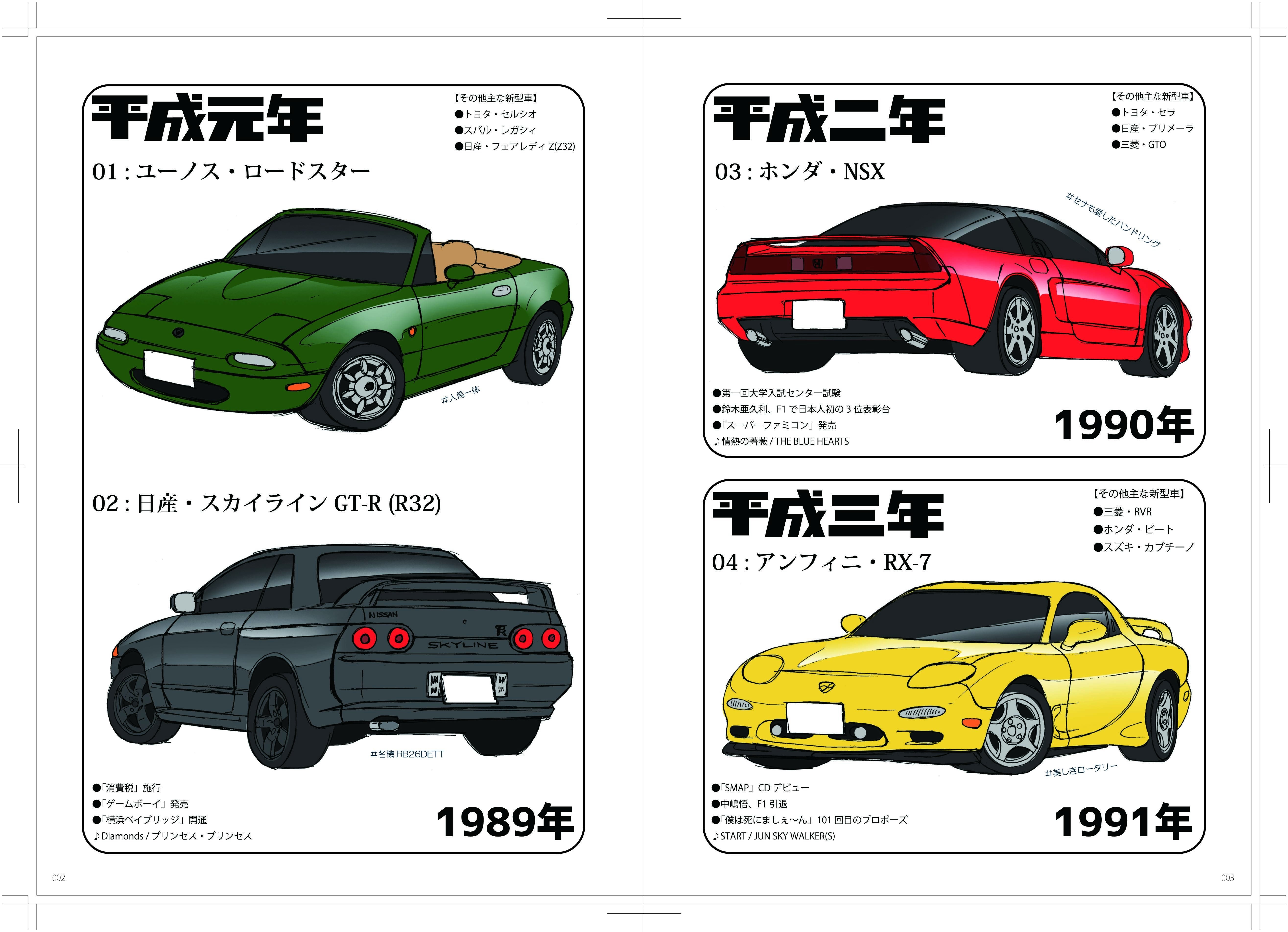 ③平成の時代を名車イラストで振り返るコーナーもあります!