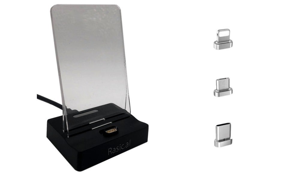 外では小型充電器として使用でき、そのまま家でもケーブルレスで使えるように、マグネットタイプのスタンドもご用意しました。