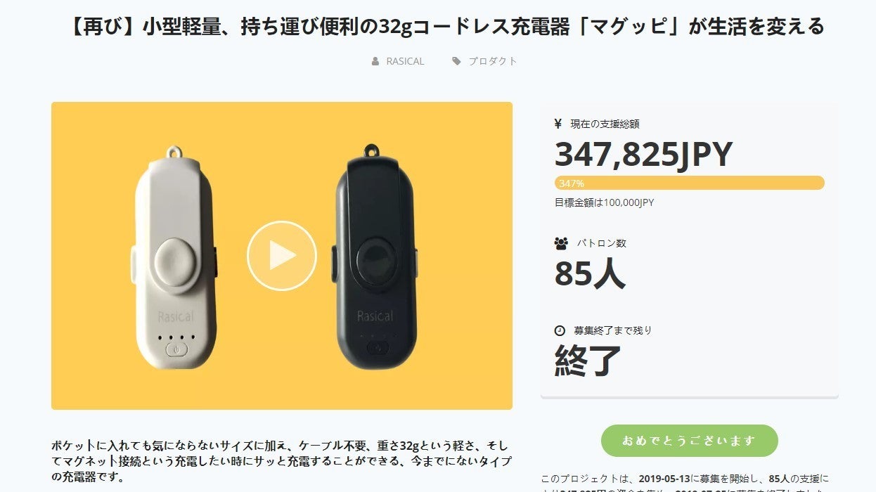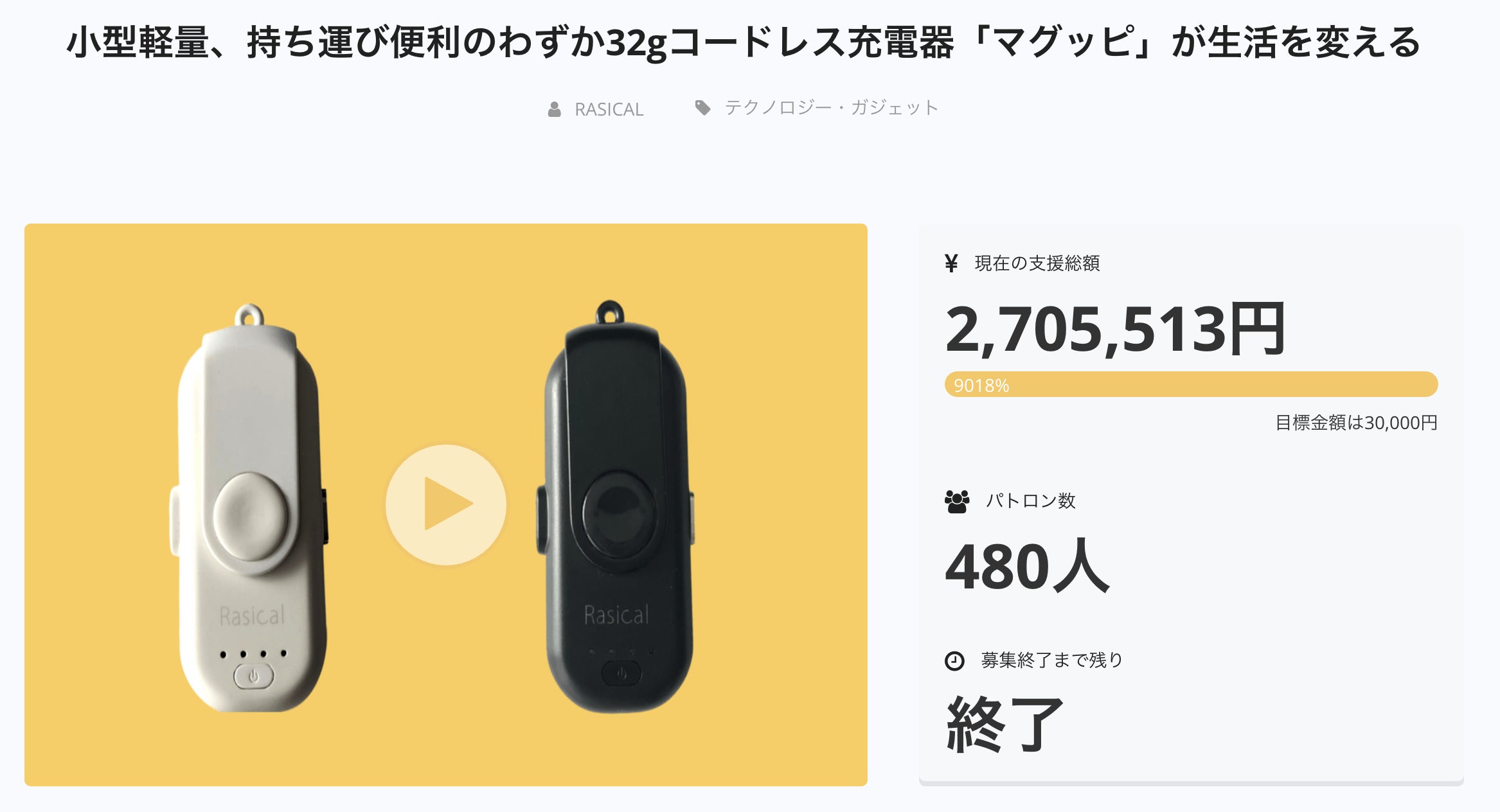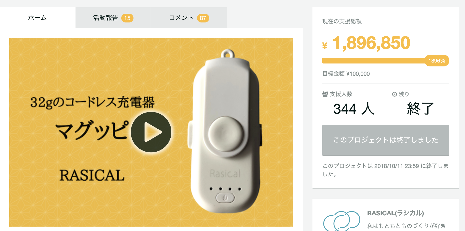 また、既にマグッピは2度の資金調達を行い、合計800名の支援者様から460万円以上のご支援を頂きました。