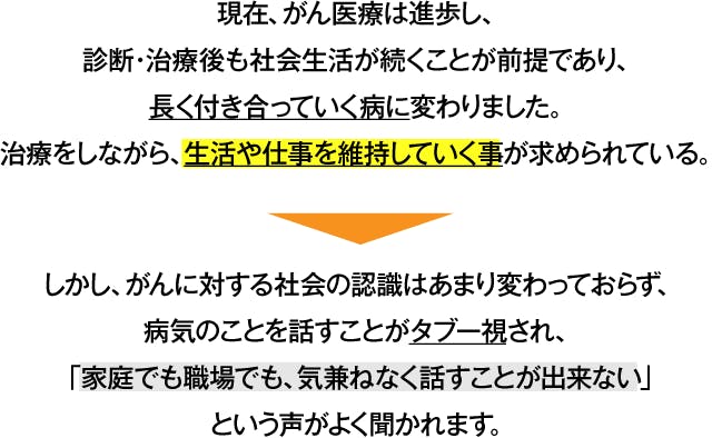 数年前にがんを患った親族の看病を経験しました。がんを告知され病状が進行していく段階で、患者本人、家族は様々な不安を抱えることを経験しました。病状や治療に対する不安だけでなく、精神的なこと、生活のこと、仕事や経済的なこと、家族に対すること、将来的なことなど、多くの不安がのしかかりました。 日本人の2人に1人ががんを患うと言われる中、そんな不安を少しでも和らげられることが出来ないかと考えたのが始まりです。