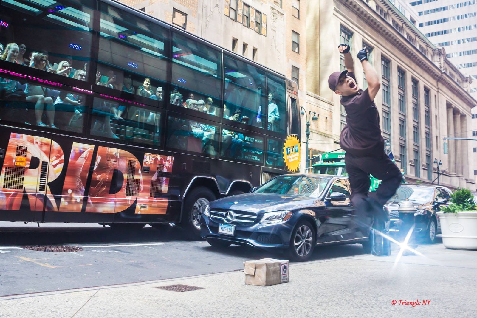 2010年からニューヨークに滞在し、2年間、ダンスの専門学校で技術を磨き、その後たくさんのオーディション等を受け続けて、現在は「The Ride(ライド)」と呼ばれる劇場型観光バスツアーのショーでのパフォーマンスが中心になっています。