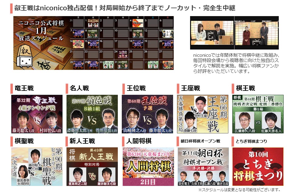 niconicoでは対局の放送に加えて、棋士にもスポットを当てた番組を制作し放送しています。
