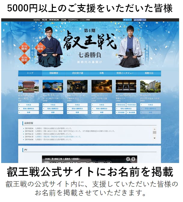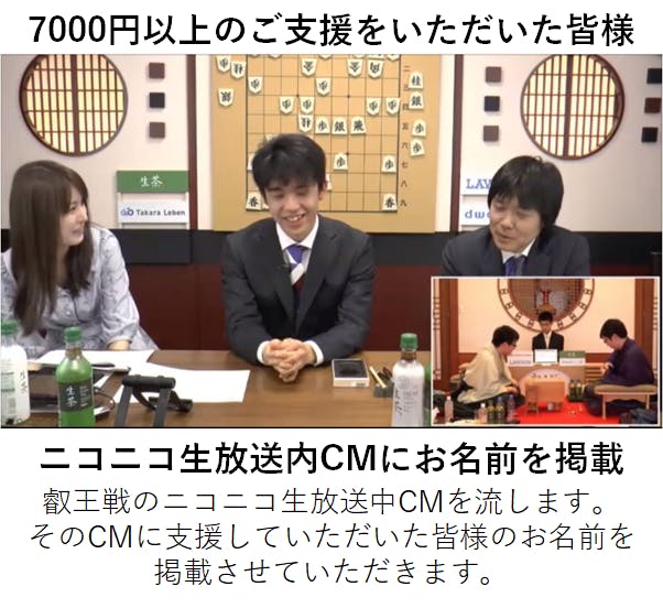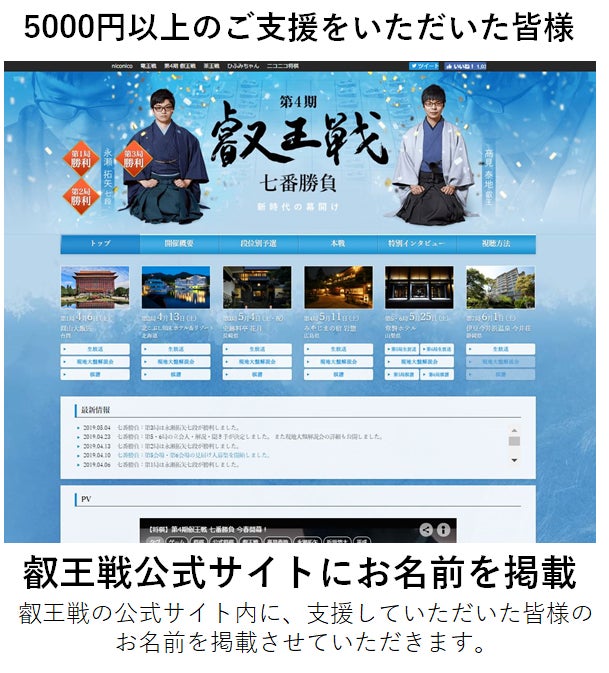 皆さまからいただいた支援金は、叡王戦の運営や番組制作に使用させていただきます。