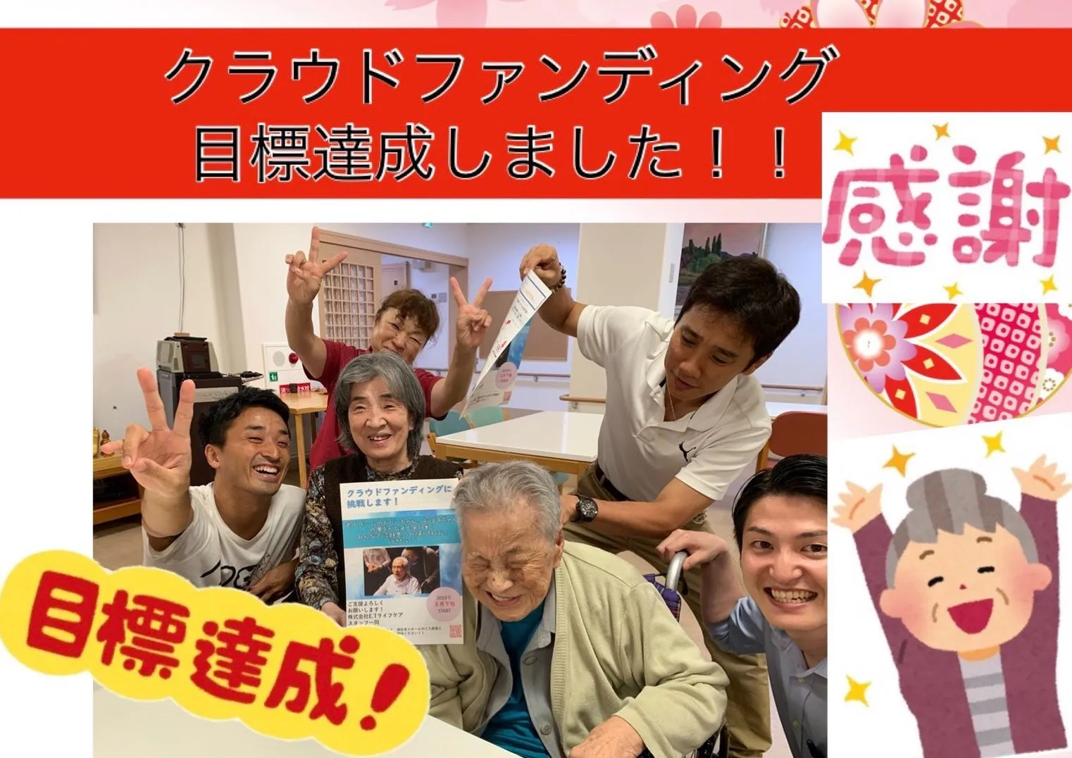 クラウドファンディングを成功させることで、たくさんの高齢者施設のご入居者そして、日々支える側としてご入居者に寄り添っている介護者やご家族にも知ってもらい、私たちにもチャレンジできるかも?そんなふうに思ってもらえるきっかけとなれば、嬉しいです。